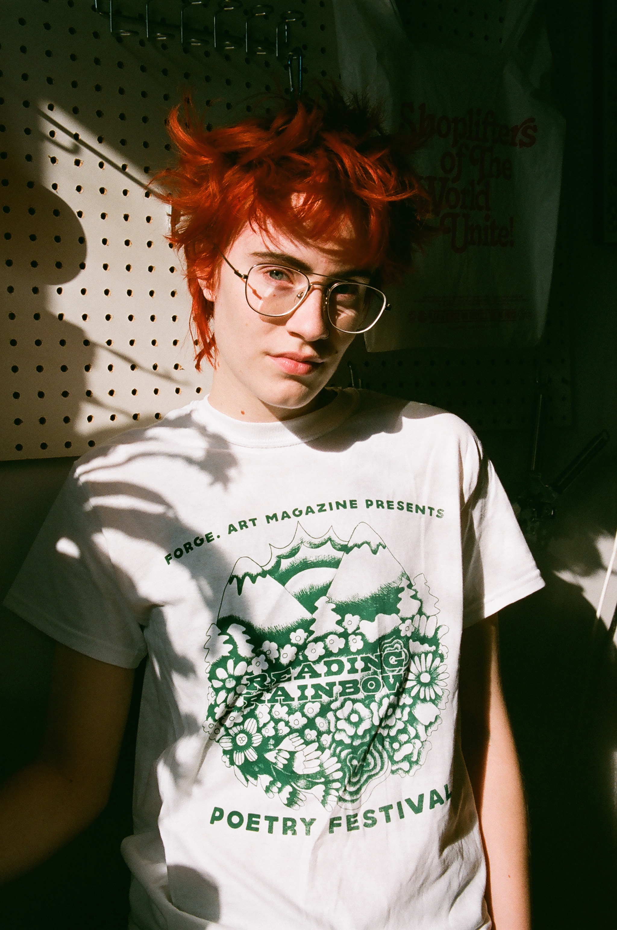 T-Shirt designed by Leesh Adamerovich for the Reading Rainbow Poetry Festival hosted by FORGE. at the CURRENTS Art Show on display during fall 2017.