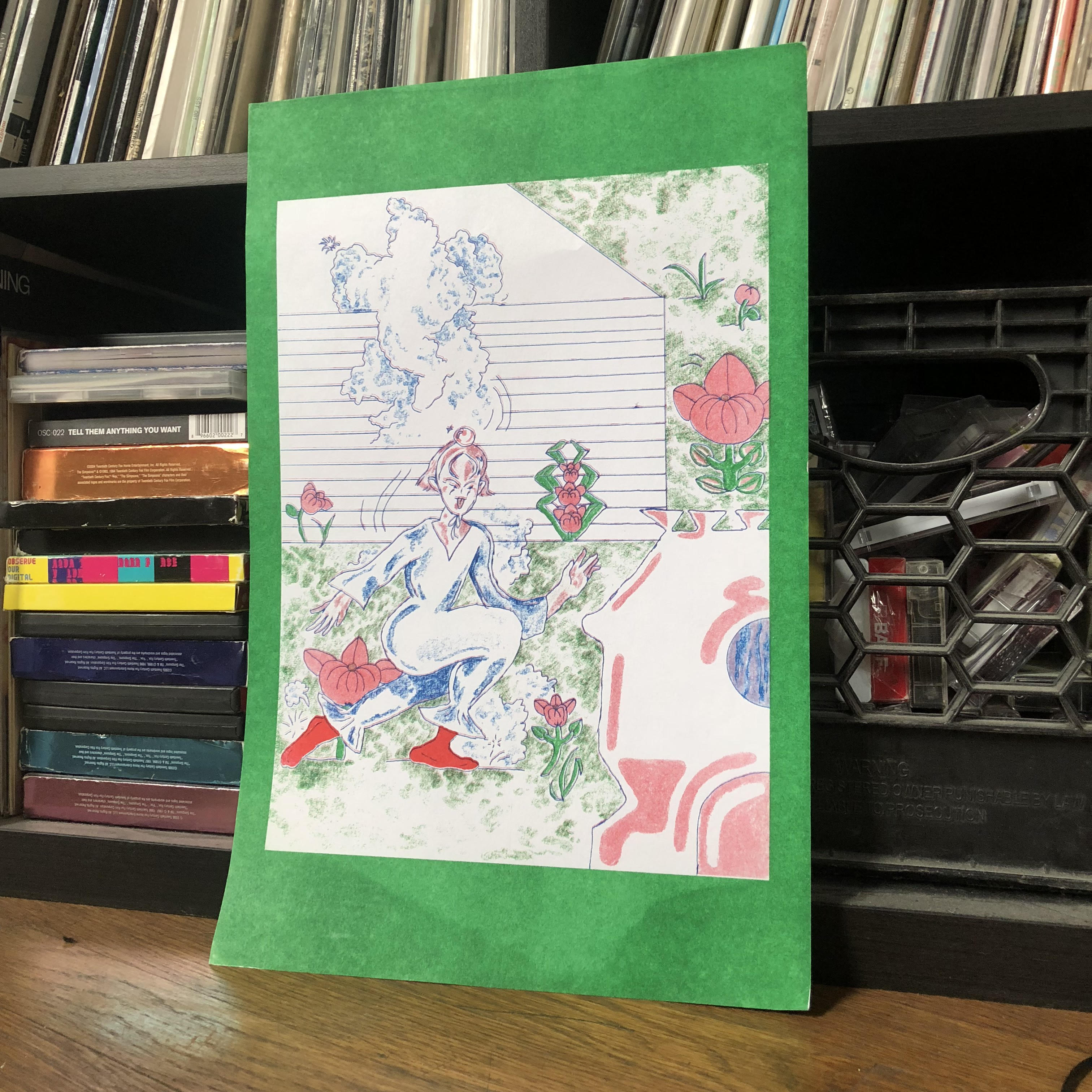 An 11x17 riso print of the first panel of Juli Majer's comic "My Room" from Issue 15 of FORGE.
