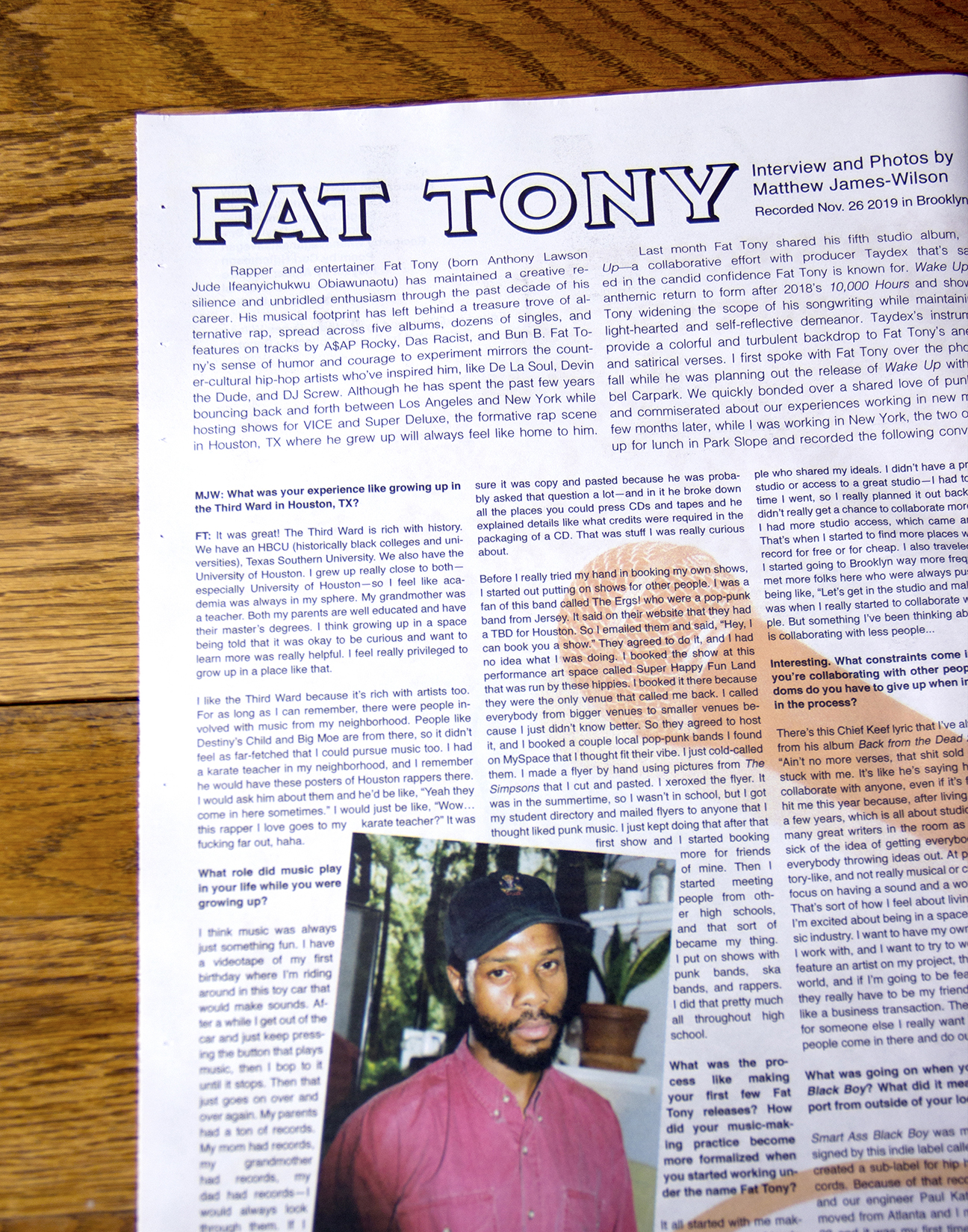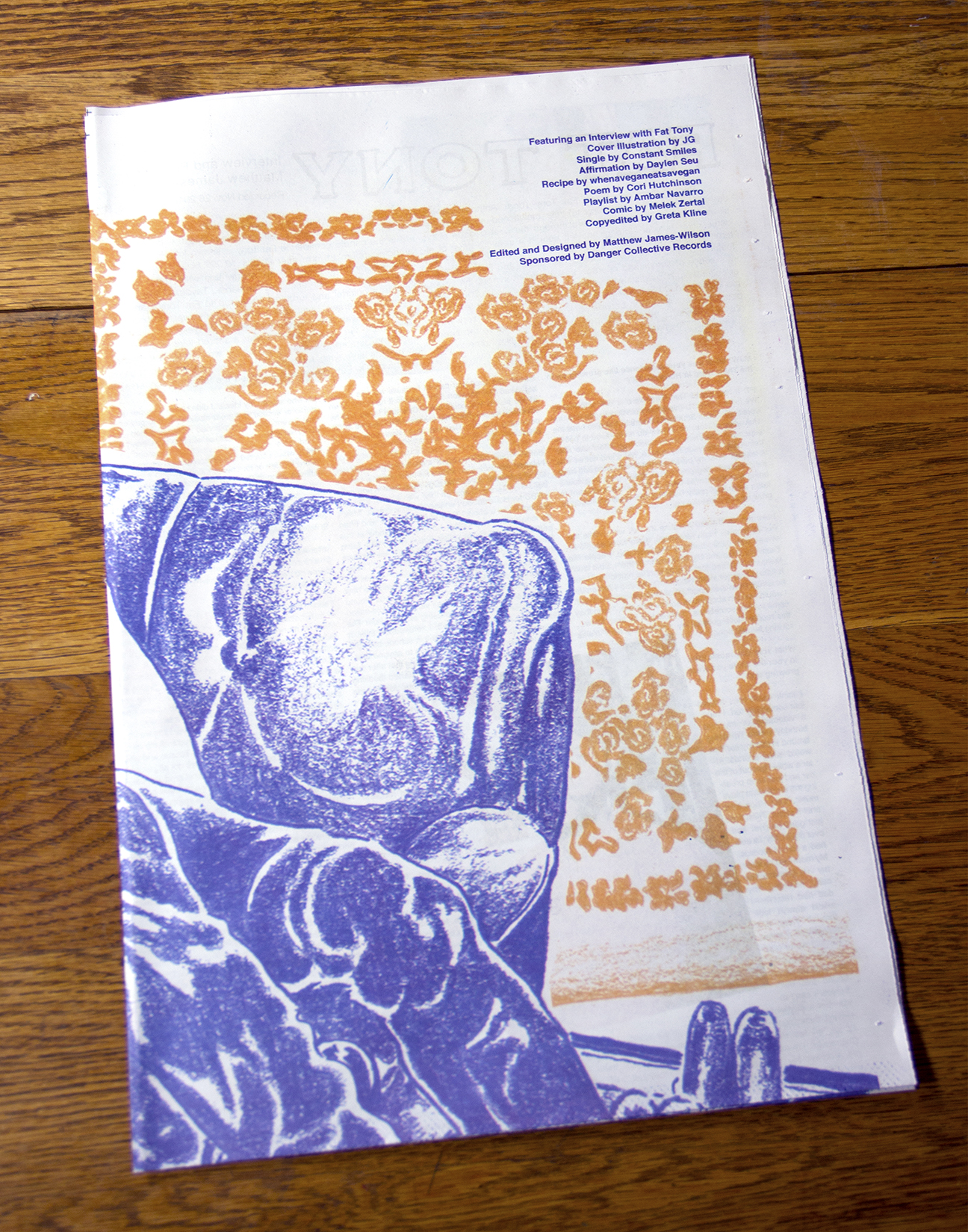 Issue two includes an in depth interview with Fat Tony, a digital single by Constant Smiles, a cover illustration by JG, a comic by Melek Zertal, a playlist by Ambar Navarro, a poem by Cori Hutchinson, a recipe by whenaveganeatsavegan, and an affirmation illustration by Daylen Seu.