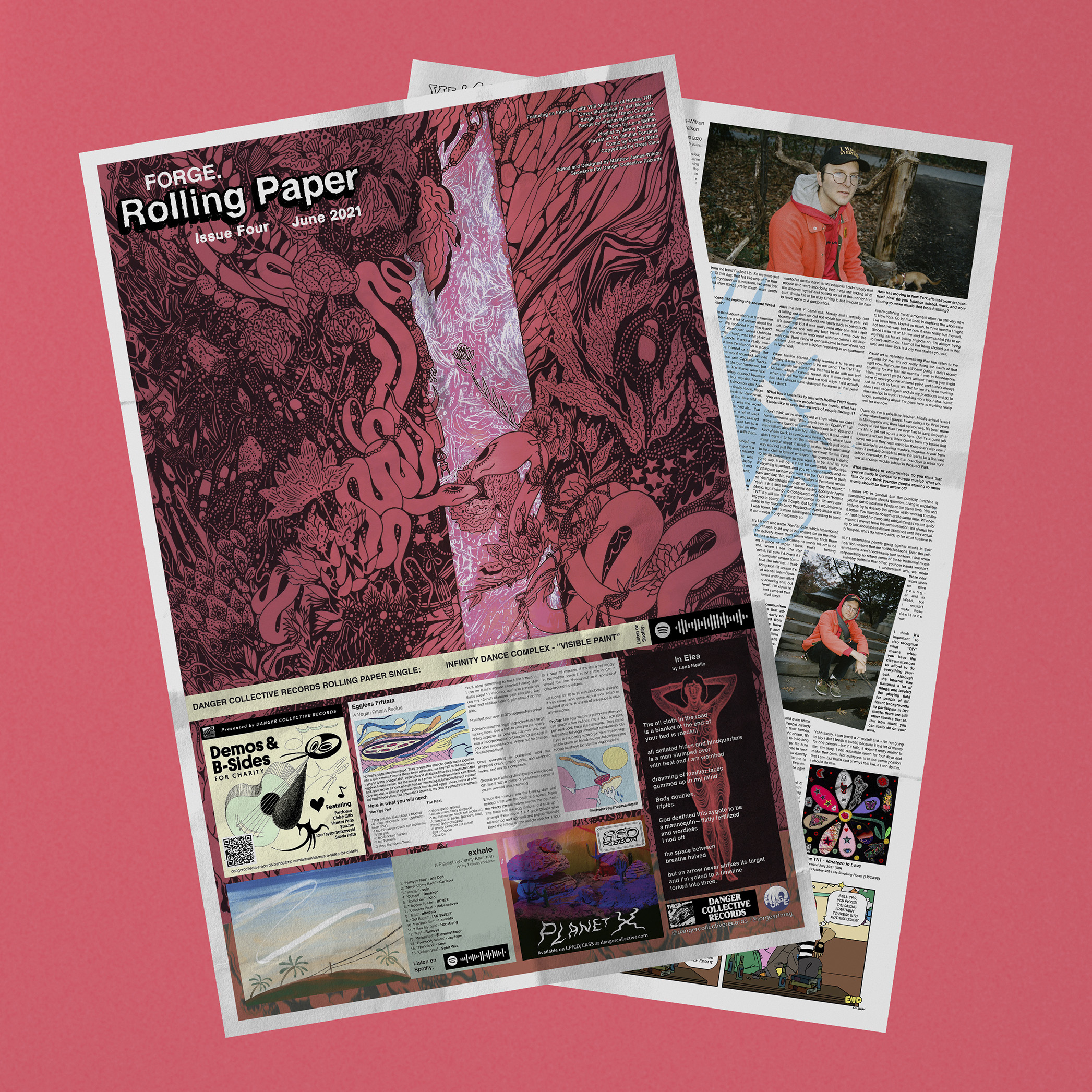 FORGE Rolling Paper is a one sheet (22.75" x 34") newspaper sponsored by Danger Collective Records.